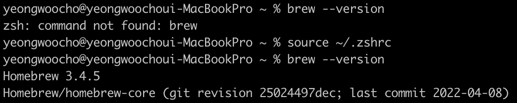 끝인줄 알았는데 PATH가 문제가 있어보였고, 아래 Command Line으로 Version을 검색하니 brew를 찾을 수 없단다.
