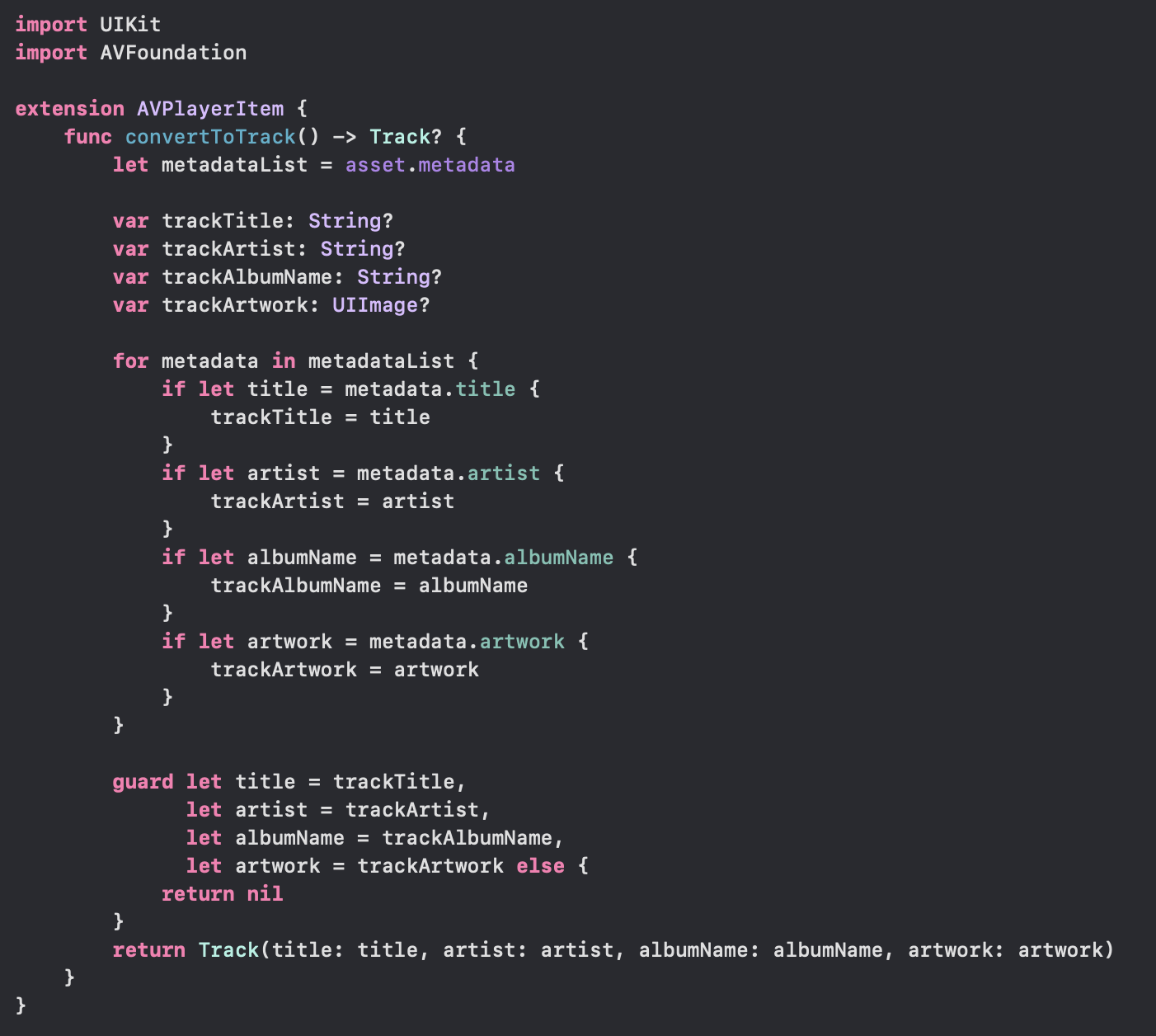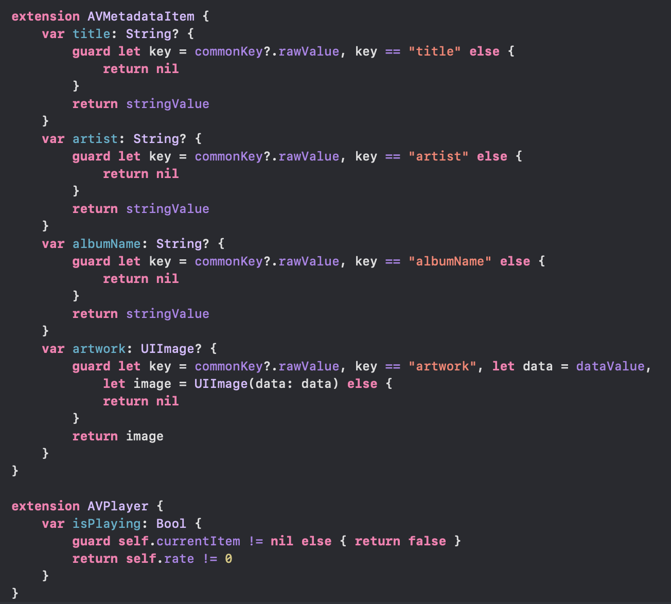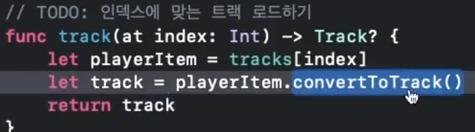 현재 존재하는 AVPlayerItem을 extension을 통해 내가 원하는 메소드의 구조를 완성하였다.