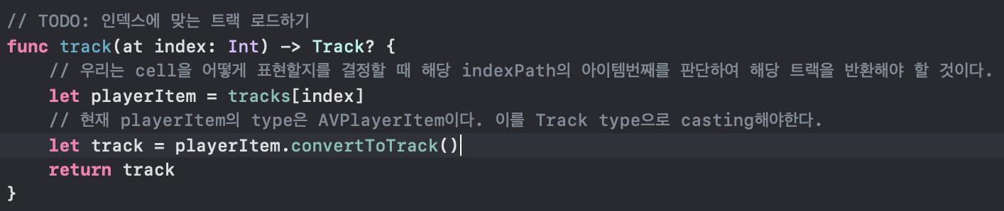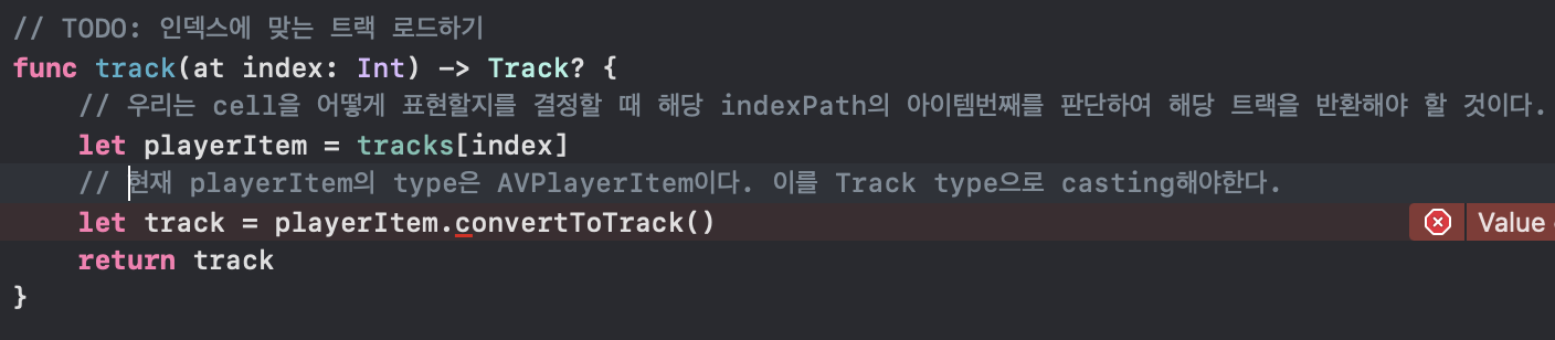 우선 tracks는 현재 AVPlayitem의 array이며 이 안에 존재하는 아이템들의 타입을 Track으로 변경시킨다.