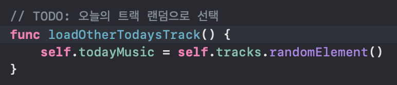 헤더로 사용할 오늘의 추천곡이 랜덤으로 바뀌도록 함수를 구현하였다.