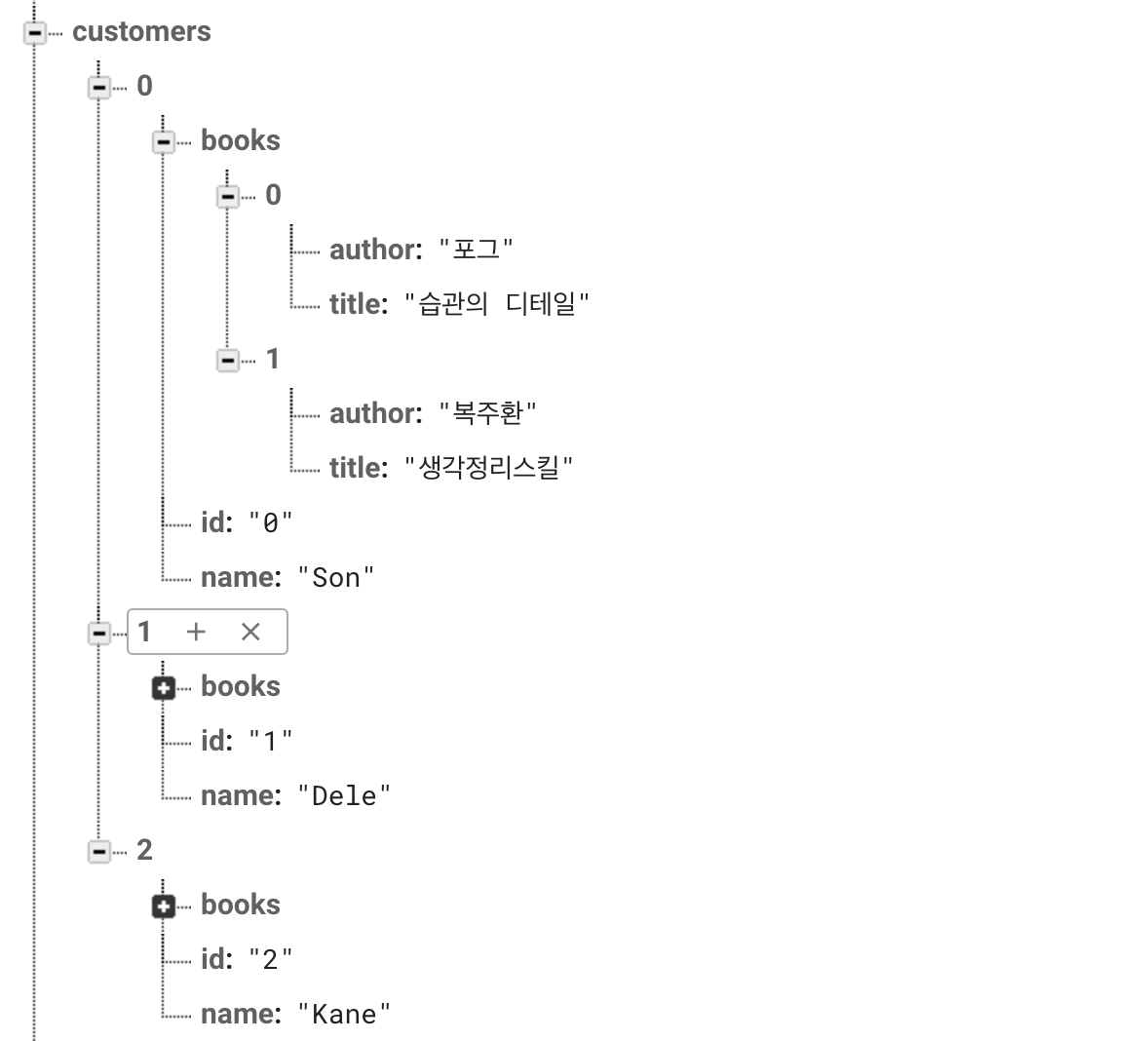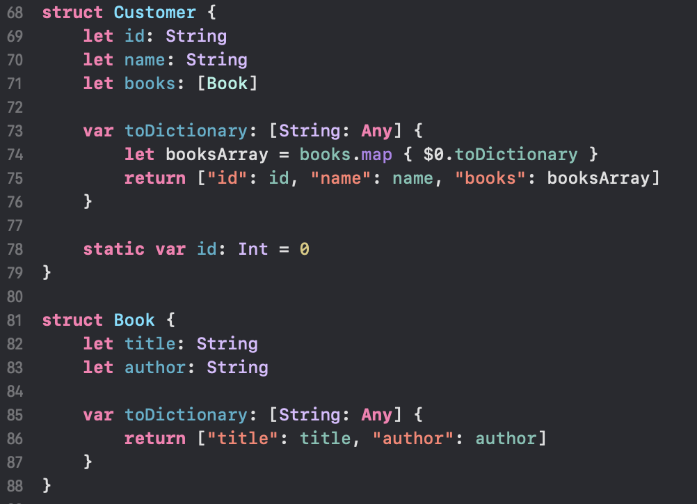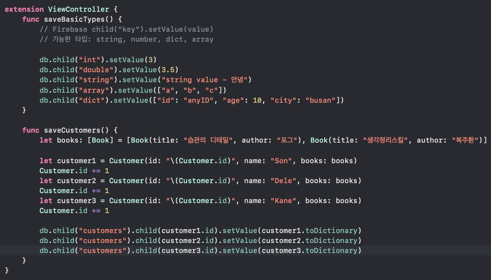 이렇게 compute property를 더하면 Customer은 Book type을 dictionary type으로 데이터베이스에 쓰게 된다.