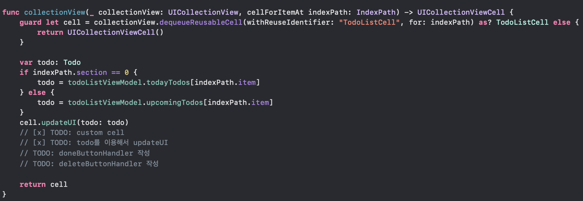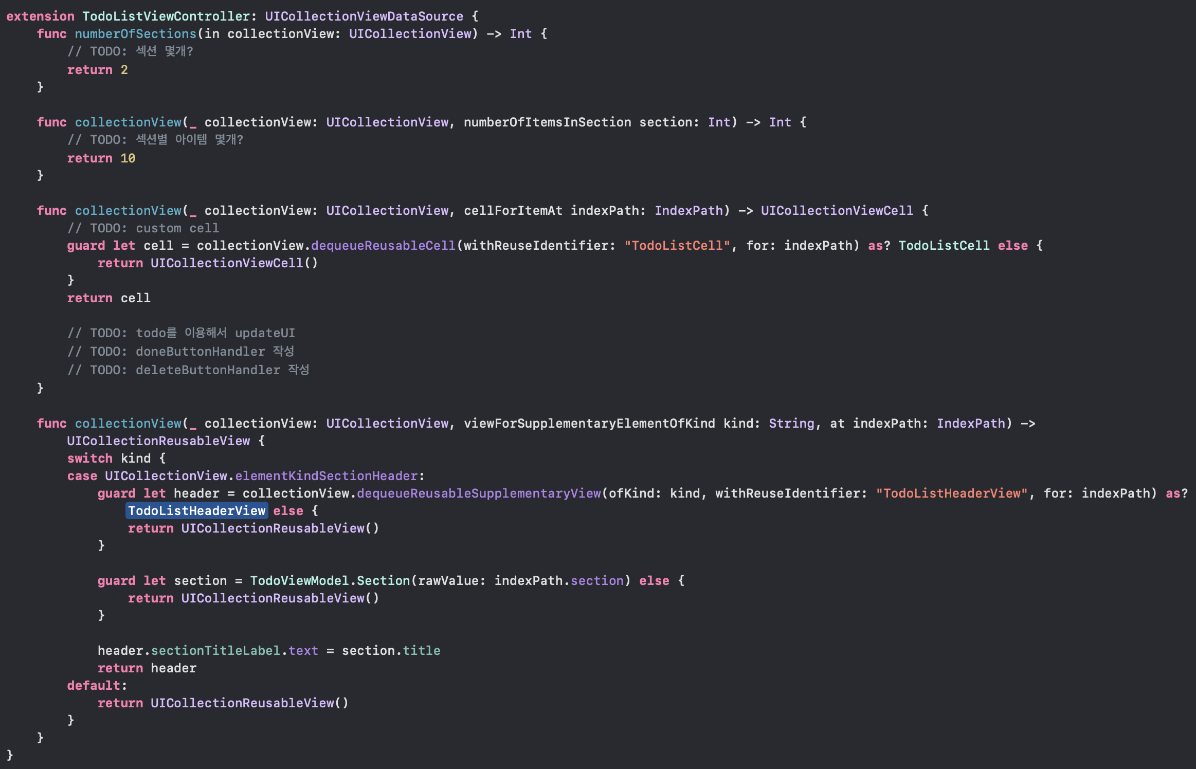 TodoViewModel에서는 Section이라는 것이 존재한다.