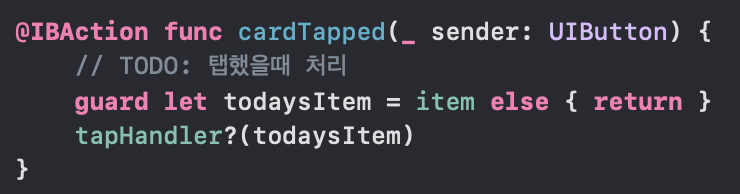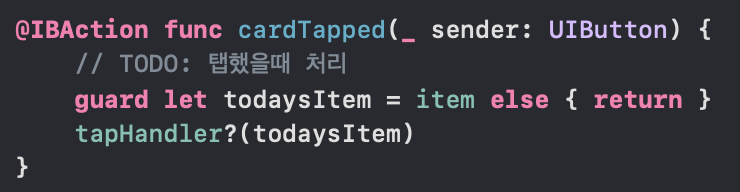 여기서 tapHandler이라는 Closure를 실행하게 되면서 todaysItem을 던져주는 것이다.
