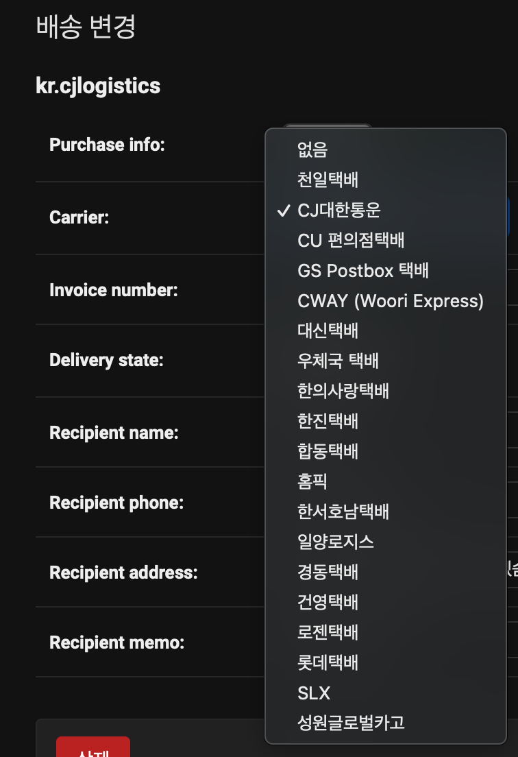 class CarrierCase(models.TextChoices): # 택배사
