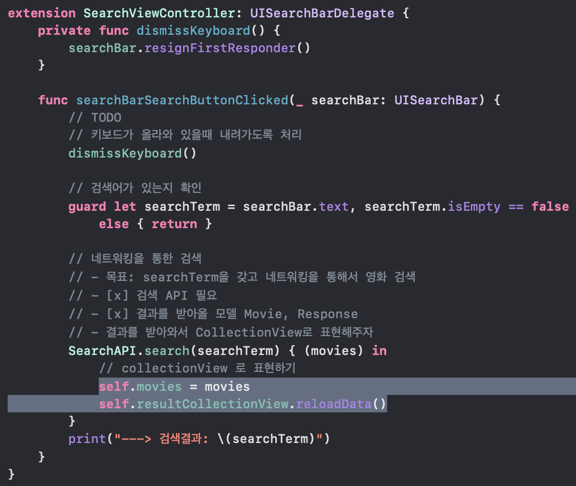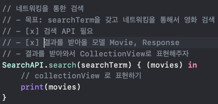 이제 결과를 받아와서 CollectionView를 표현해보자