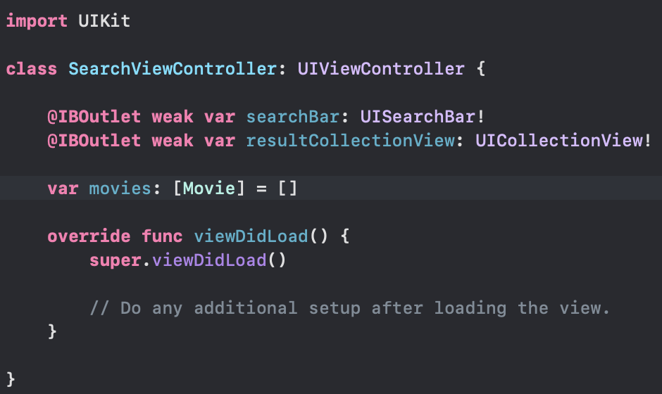 여기서 Outlet 변수 resultCollectionView는 해당 CollectionView와 연결되어 있다.