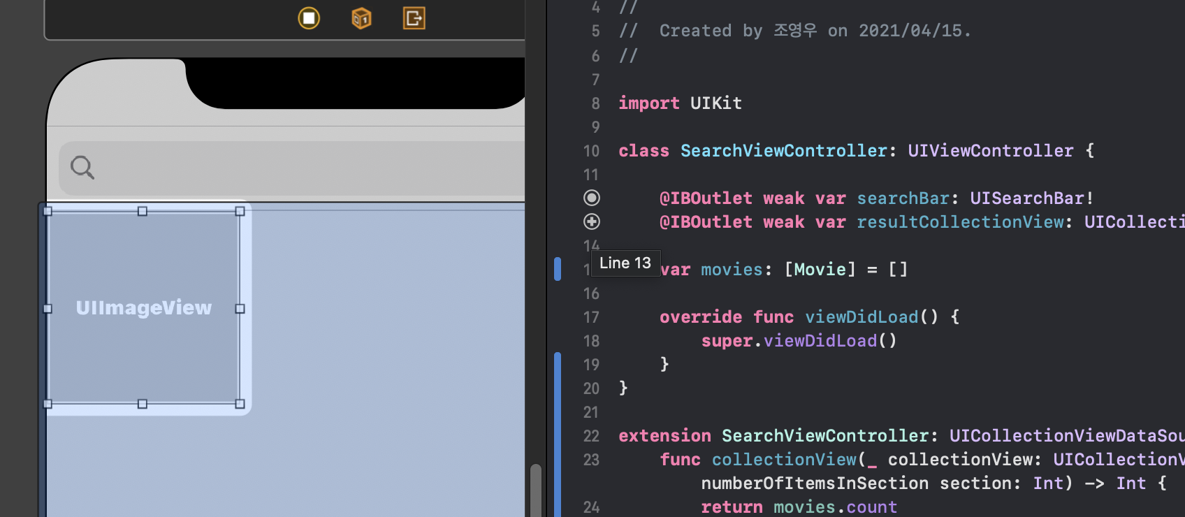 그 후 imageView를 Cell의 movieThumbnail과 연결한다.