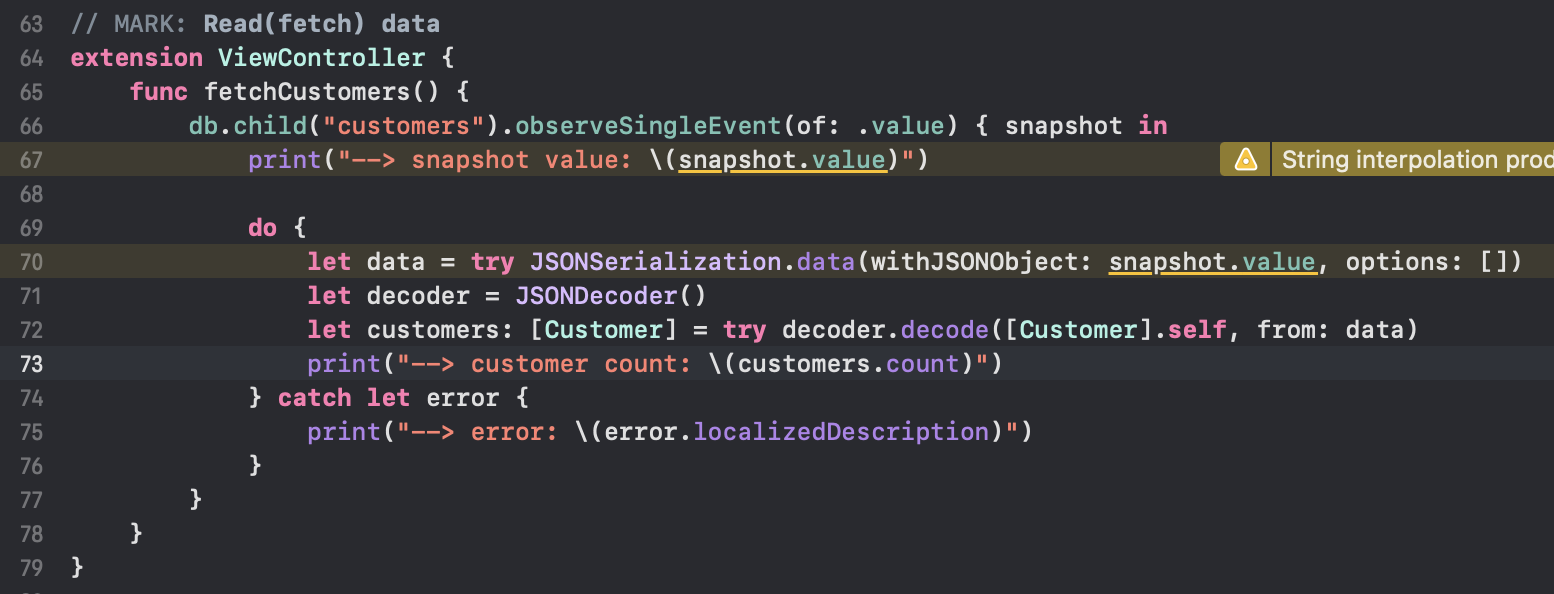 데이터를 넣어서 JSON데이터 형식을 생성하고 Decoder을 통해 우리가 원하는 데이터 타입인 [Customer]형태로 decode를 했다. 물론 Codable을 지정했기에 아주 간단하게 할 수 있다.